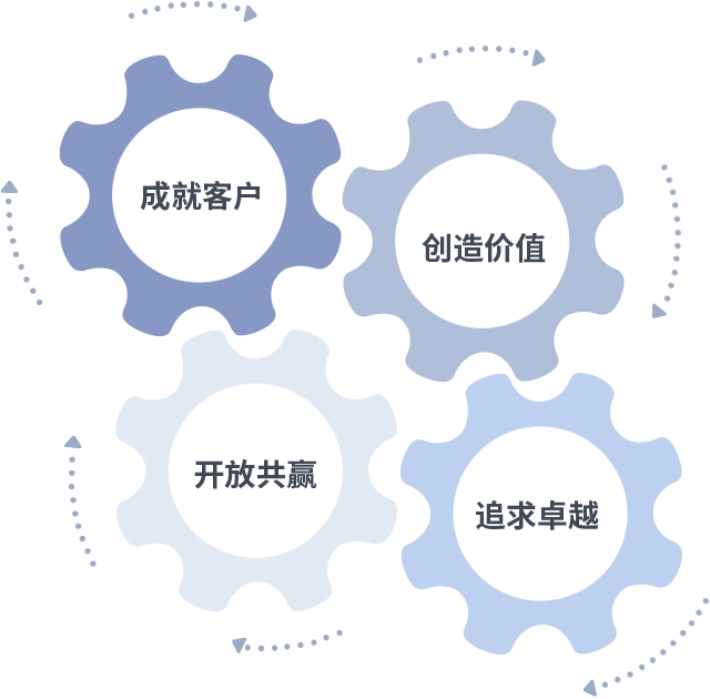 成就客户是一切决策的出发点,创造价值是衡量所有工作的标准,追求卓越是vinbet浩博做事做人的态度,开放共赢是vinbet浩博的格局也是最终的结果。价值观的齿轮环环相扣,推动着组织里的每个人不断向前。